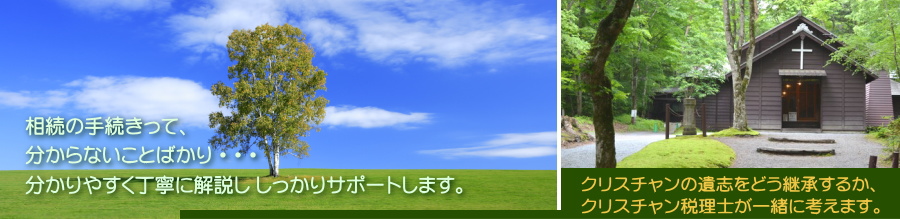 クリスチャンの意志の継承のためには遺言書の作成や、遺産分割協議書の作成が重要です。これらの業務は税理士業務ではありませんが、当事務所は行政書士事務所でもありますので、これらの業務も中心業務の一つとしています。 |
